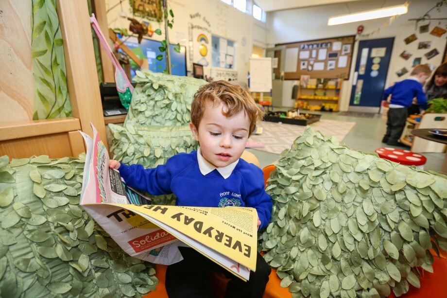 At Front Lawn Primary reading for pleasure is an integral part of our timetable. Teachers regularly read and share stories with the children - these can come from the teacher’s own library, the school library, the reading spine or their dazzle library. Children are encouraged to read at any available time - this could be from the reading sheds situated in the playgrounds and outside entrances, reading comics and various different books during breakfast club, reading in the exciting and stimulating libraries or using their loyalty cards earnt from reading at home to choose a book from the vending machine.